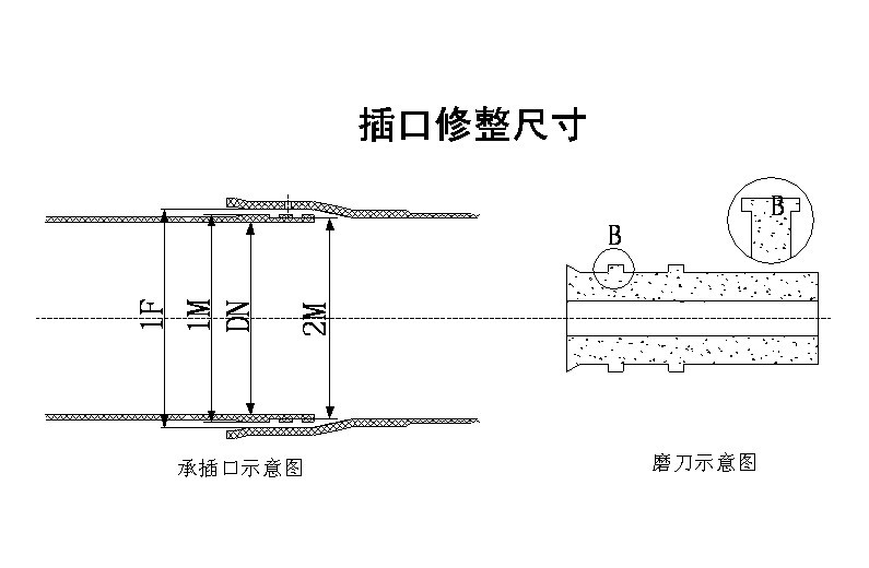 磨刀 (Φ130)凸輪 B特性 | 公稱直徑 DN | 模具外徑 1F(不含薄膜) | 標(biāo)準(zhǔn)承插口直徑配合間隙(mm) | 插口外徑1M (不含石臘樹(shù)脂 ) | 插口溝槽外徑2M (不含石臘樹(shù)脂) | 承插口 直徑 配合間隙修整范圍 | 插口溝槽修整周長(zhǎng)( Q 為模具承口無(wú)薄膜時(shí)的實(shí)測(cè)周長(zhǎng)) | “ O”型密封圈內(nèi)徑 A | 密封圈截面直徑 B |