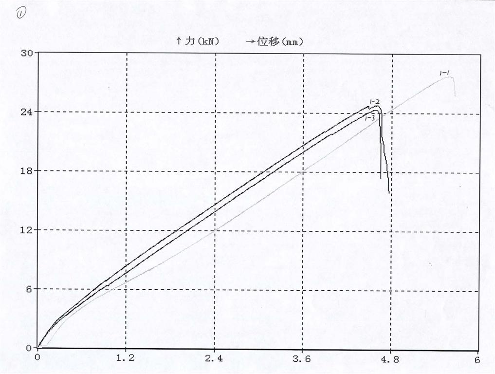圖8.6.2-3和圖8.6.2-4是小開口的板條試樣的拉伸載荷變形曲線。從圖中可以看出,試樣基本上沒有兩次破壞的情況。這說明, 當(dāng)其內(nèi)側(cè)被拉壞時試樣的外側(cè)應(yīng)力水平也已較高,隨著內(nèi)側(cè)的拉壞外側(cè)也很快被拉壞。