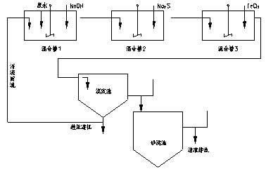 2)加入有機硫化物、絮凝劑和適量的助凝劑,通過機械攪拌創(chuàng)造合適的反應梯度使廢水中的大部分重金屬形成沉淀物并沉降下來;